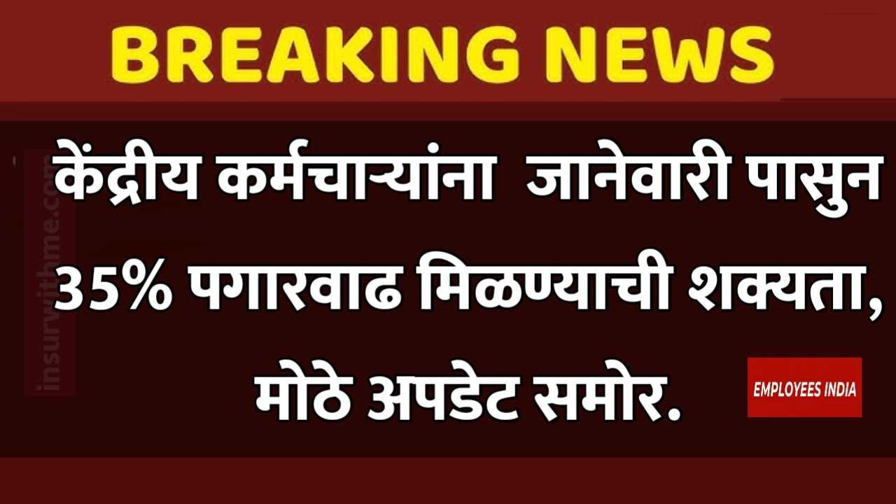 केंद्रीय कर्मचाऱ्यांना  जानेवारी पासुन 35% पगारवाढ मिळण्याची शक्यता, मोठे अपडेट समोर. 8th Pay Commission salary hike