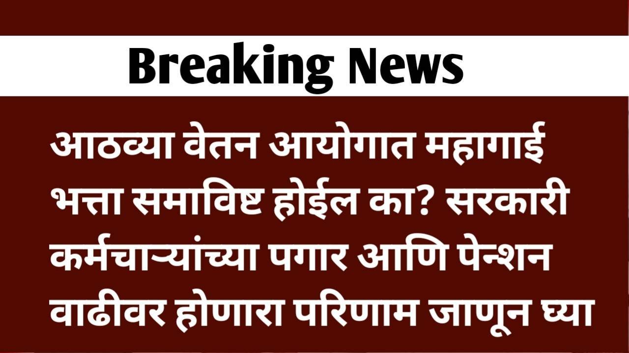 8th pay commission news केंद्र सरकारी कर्मचारी आणि निवृत्तीवेतनधारक आठव्या वेतन आयोगाच्या अंमलबजावणीची आतुरतेने वाट पाहत आहेत. प्रत्येकजण अपेक्षित पगार आणि पेन्शन वाढीकडे उत्सुकतेने पाहत आहे. यावेळी महागाई भत्ता (डीए) मूळ पगारात विलीन केला जाईल का हा एक महत्त्वाचा प्रश्न आहे.