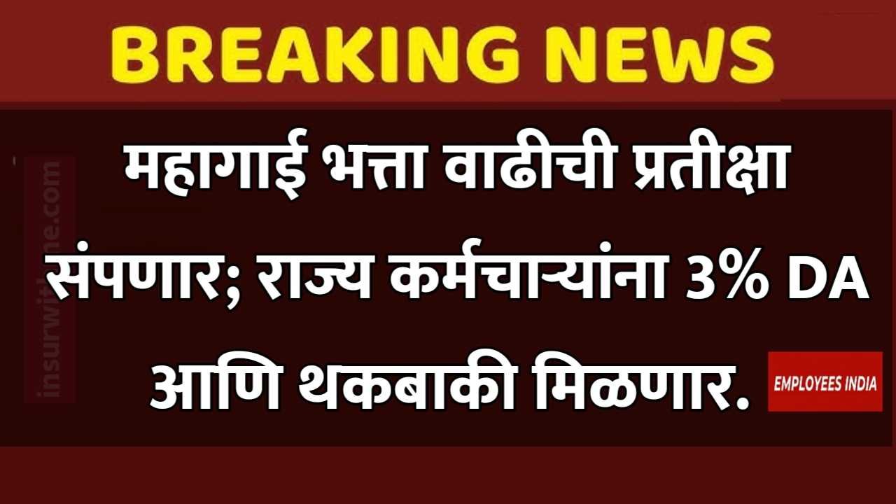 राज्य कर्मचाऱ्यांना 3% महागाई भत्ता वाढ मिळणार, पण थोडी प्रतीक्षा करावी लागणार.