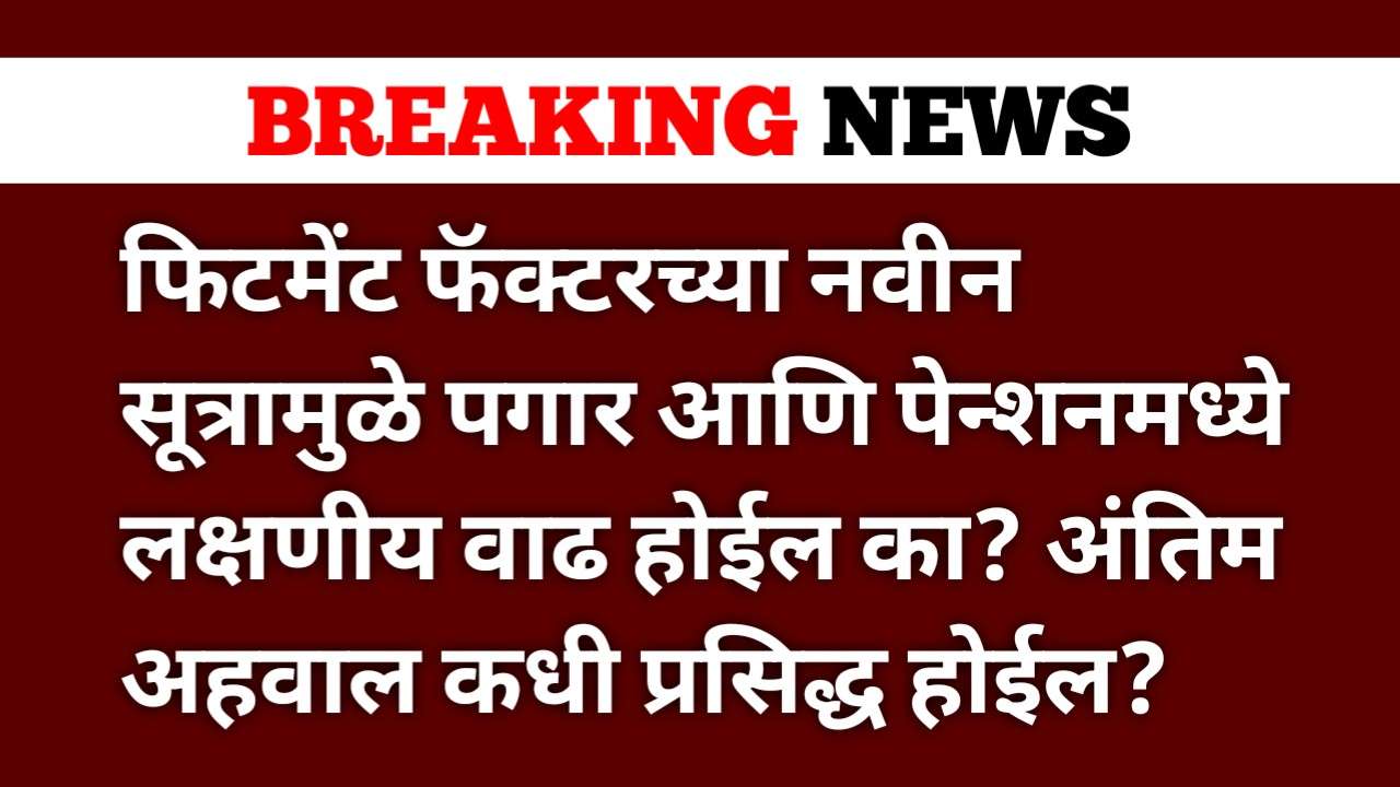 एकंदरीत, फिटमेंट फॅक्टरवरील हे नवीन सूत्र भविष्यात कर्मचारी आणि निवृत्तीवेतनधारक या दोघांसाठीही मोठा दिलासा ठरू शकते.