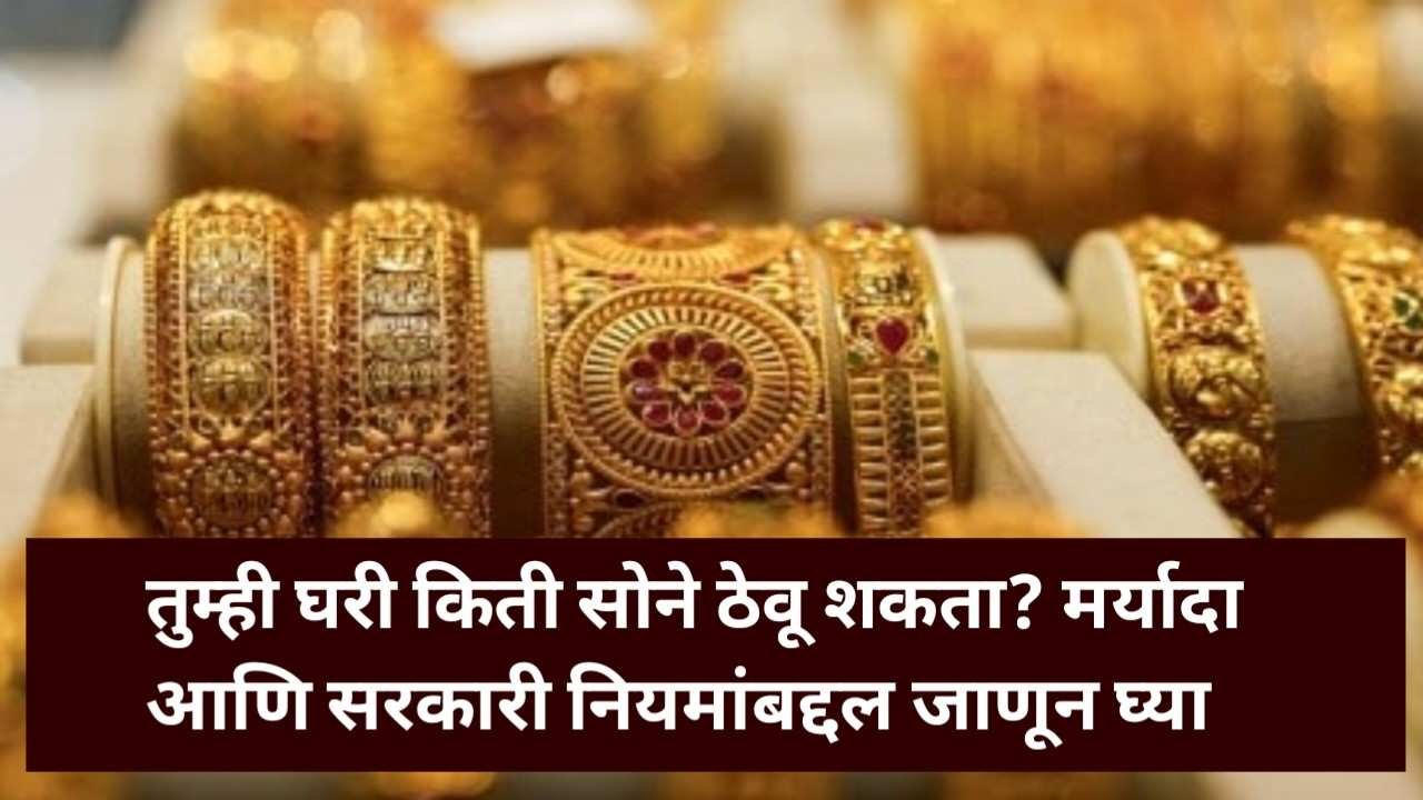 भारतात पुरुष, विवाहित महिला आणि अविवाहित महिलांसाठी सोने खरेदी आणि साठवण्याचे नियम वेगळे आहेत. विवाहित महिलांना ५०० ग्रॅमपर्यंत सोने ठेवण्याची परवानगी आहे. अविवाहित महिला २५० ग्रॅमपर्यंत आणि पुरुष १०० ग्रॅमपर्यंत सोने ठेवू शकतात. ही रक्कम कोणत्याही परिस्थितीत जप्त केली जात नाही. Gold update