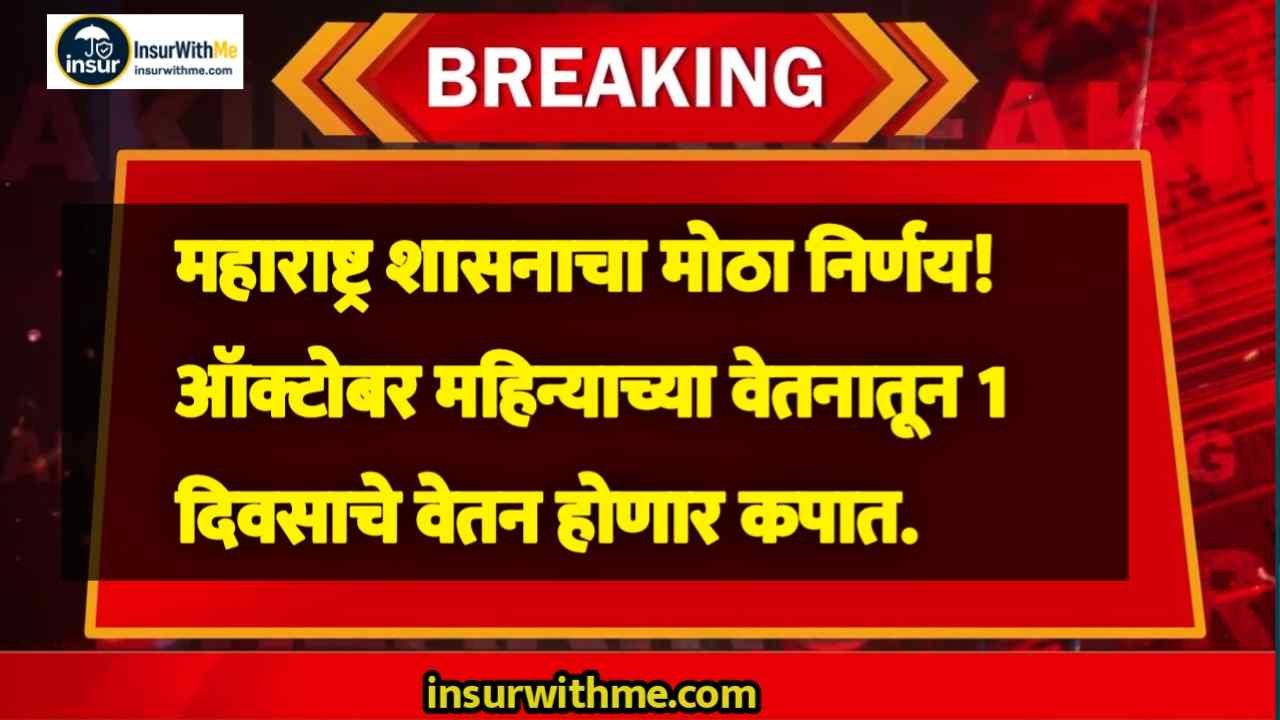 महाराष्ट्र शासनाचा मोठा निर्णय! ऑक्टोबर महिन्याच्या वेतनातून 1 दिवसाचे वेतन होणार कपात. Maharashtra Government Decision 2025