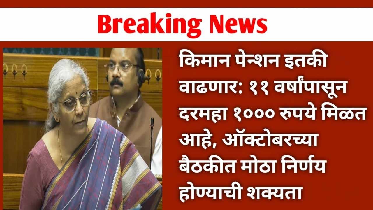 Minimum pension :- कर्मचारी पेन्शन योजनेअंतर्गत किमान मासिक ₹१,००० पेन्शन वाढवून ₹२,५०० केले जाऊ शकते. यावर निर्णय १०-११ ऑक्टोबर रोजी बेंगळुरू येथे होणाऱ्या ईपीएफओच्या केंद्रीय विश्वस्त मंडळाच्या (सीबीटी) बैठकीत घेतला जाऊ शकतो.