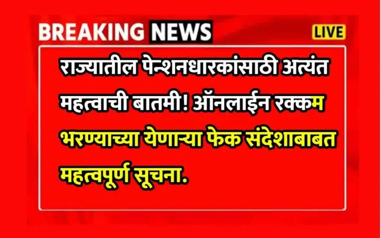 Pensioners news : नमस्कार मित्रानो महाराष्ट्रातील लेखा व कोषागार संचालनालयाने निवृत्तिवेतनधारकांसाठी एक महत्त्वाची सूचना जारी केली आहे. अलीकडे काही निवृत्तिवेतनधारकांना फसव्या कॉल्स आणि मेसेजेस येत असून, त्यामध्ये थकीत निवृत्तिवेतनाची रक्कम मिळवण्यासाठी ऑनलाइन पेमेंट करण्यास सांगितले जात आहे. या प्रकारांमध्ये Google Pay, PhonePe यांसारख्या अ‍ॅप्सद्वारे पैसे भरण्याची मागणी केली जाते.