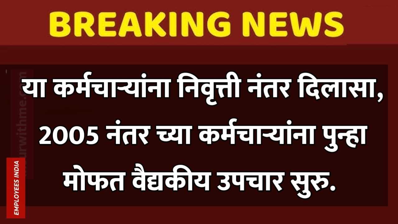 या कर्मचाऱ्यांना निवृत्ती नंतर दिलासा, 2005 नंतर च्या कर्मचाऱ्यांना पुन्हा मोफत वैद्यकीय उपचार सुरु. Retired Government Employees Benefits