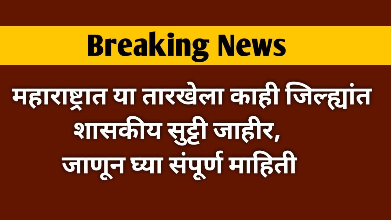 मिळालेल्या माहितीनुसार, जळगाव, पुणे आणि सोलापूर या जिल्ह्यांमध्ये जिल्हाधिकाऱ्यांनी परिपत्रक काढत २२ सप्टेंबर रोजी शासकीय सुट्टी जाहीर केली आहे. त्यामुळे संबंधित जिल्ह्यांतील सर्व शासकीय, निमशासकीय कार्यालये, शाळा आणि महाविद्यालये बंद राहणार आहेत.